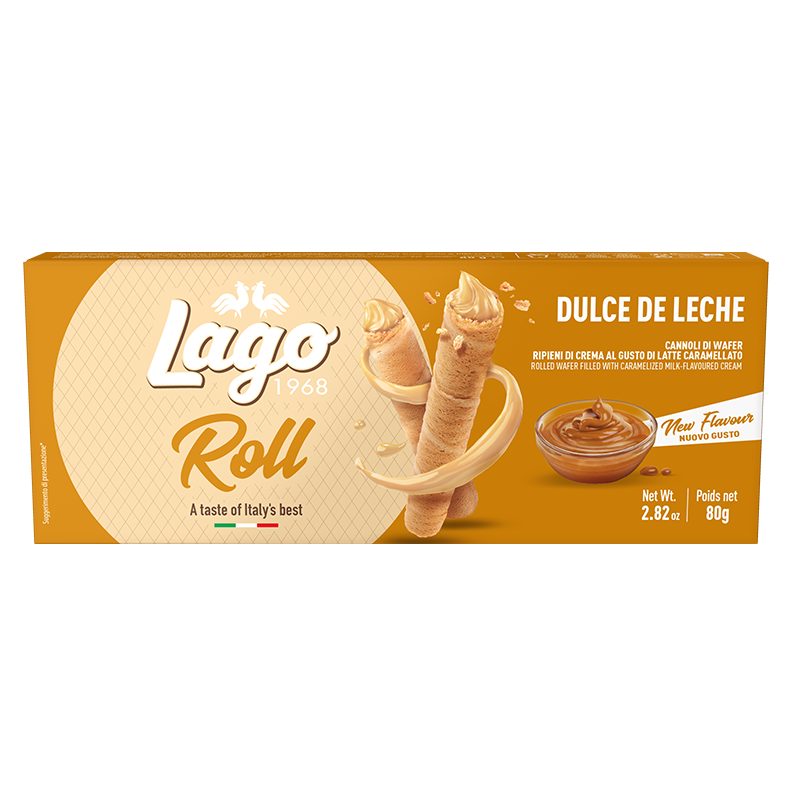 Nome Commerciale Cannoli di wafer ripieni di crema (66%) al gusto di latte caramellato